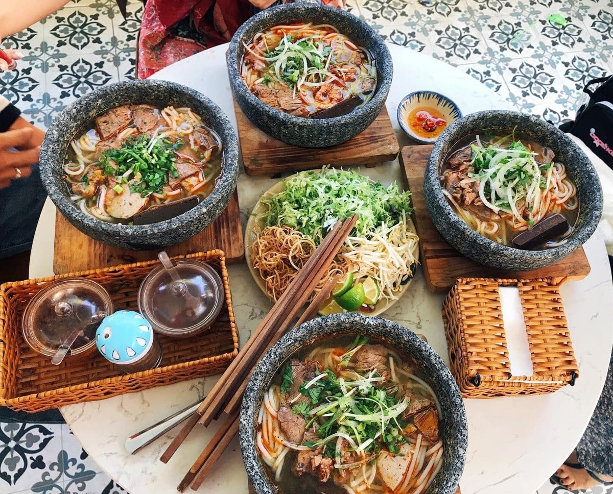 - Bánh bột lọc: ~30.000đ; Nem lụi: ~45.000đ; Bún thịt nướng/ cơm rang mắm/ bún xào mắm tép: ~32.000 – 40.000đ.